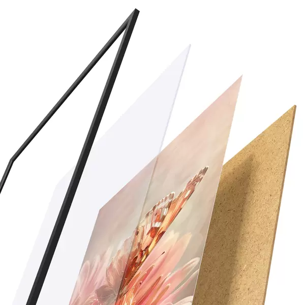Plakat koosneb raamist, pleksiklaasist, trükitud pildist ja puitlaastplaadist alusplaadist. Tänu tagaküljel olevatele kinnitustele saab plakati kohe seinale riputada.
