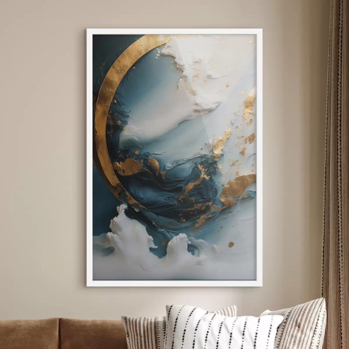 Plakat Abstraktsioon sinise ja valge värviga f39154