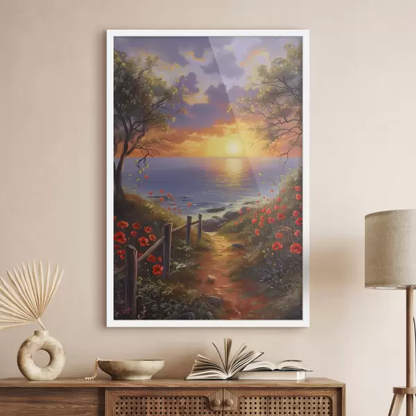 Plakat Ilus päikeseloojang veekogu ääres f39200
