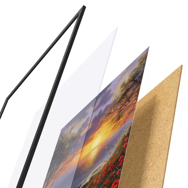 Plakat koosneb raamist, pleksiklaasist, trükitud pildist ja puitlaastplaadist alusplaadist. Tänu tagaküljel olevatele kinnitustele saab plakati kohe seinale riputada.