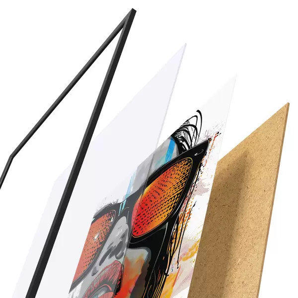 Plakat koosneb raamist, pleksiklaasist, trükitud pildist ja puitlaastplaadist alusplaadist. Tänu tagaküljel olevatele kinnitustele saab plakati kohe seinale riputada.