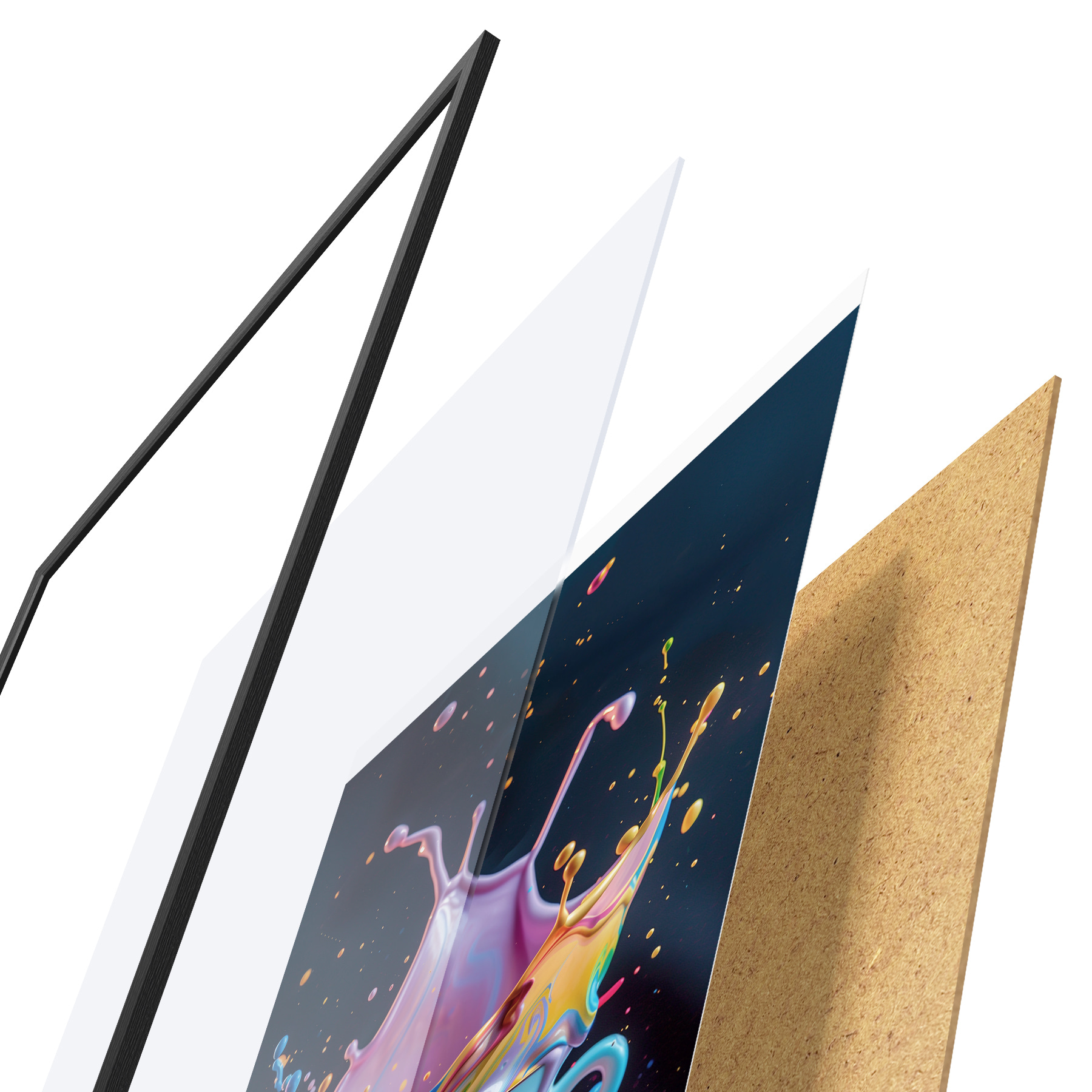 Plakat koosneb raamist, pleksiklaasist, trükitud pildist ja puitlaastplaadist alusplaadist. Tänu tagaküljel olevatele kinnitustele saab plakati kohe seinale riputada.