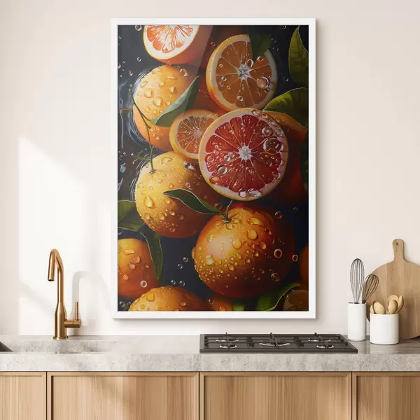 Poster Apelsinid ja greibid tumedal taustal Nr f39238