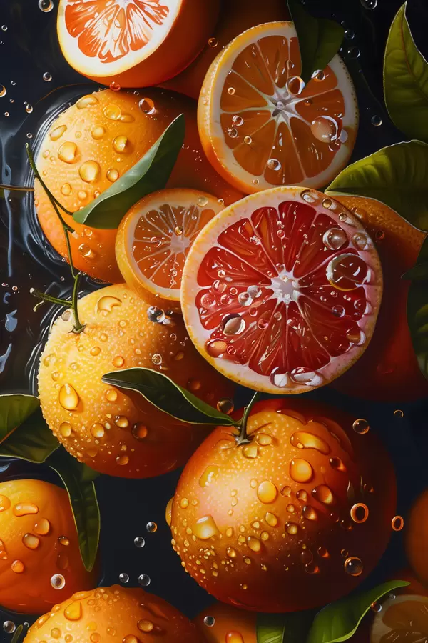 Poster Apelsinid ja greibid tumedal taustal Nr f39238
