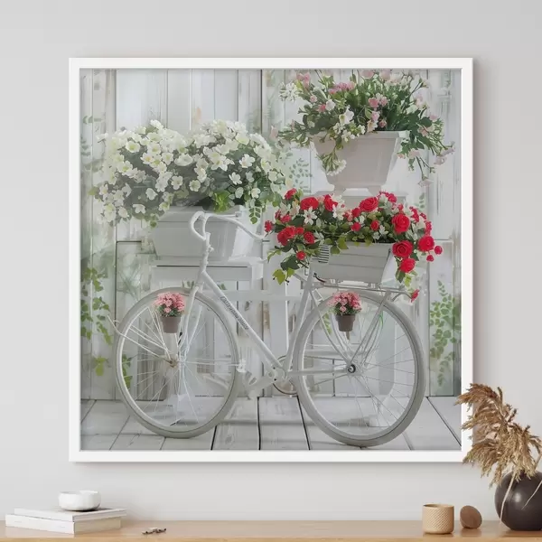 Plakat Provence'i stiilis jalgratas ja lillekorv f39242