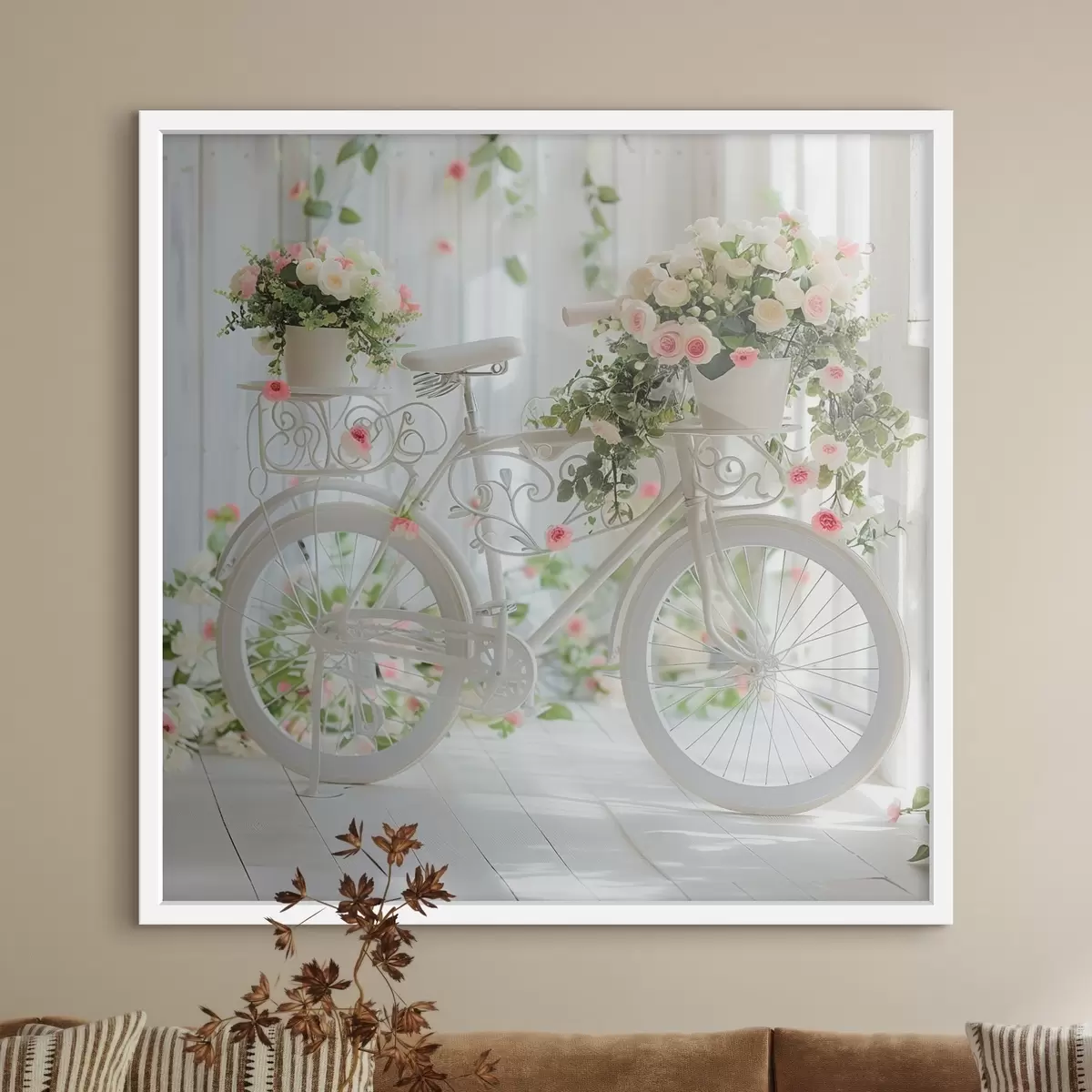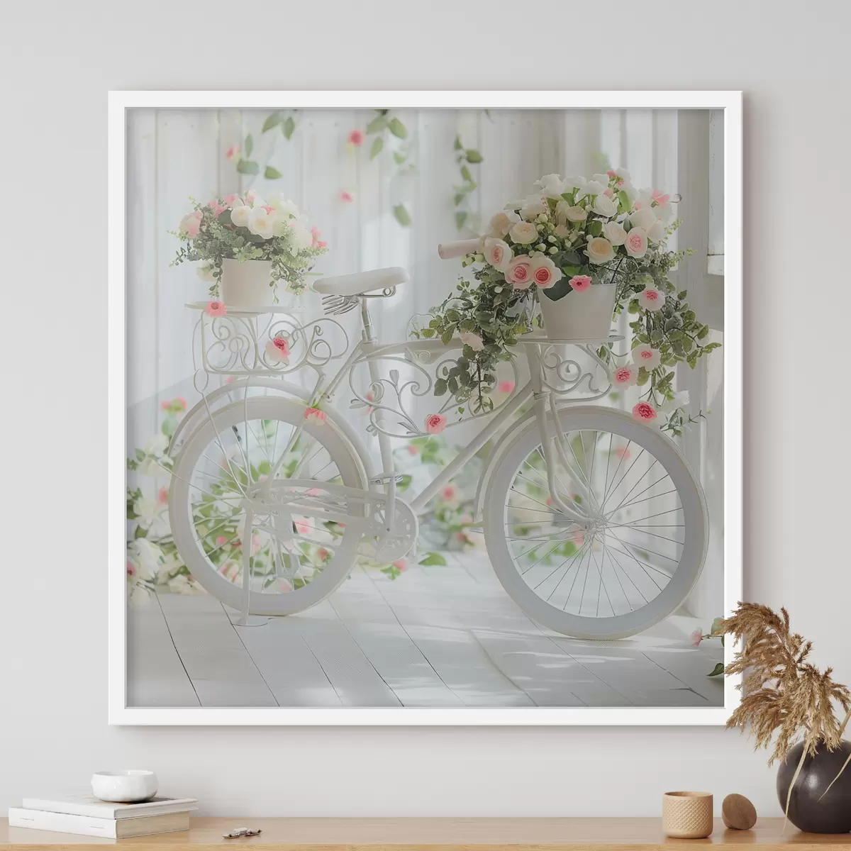 Plakat Valge jalgratas koos lillekorviga Provence'i stiilis f39243