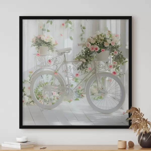 Poster Valge jalgratas koos lillekorviga Provence'i stiilis Nr f39243