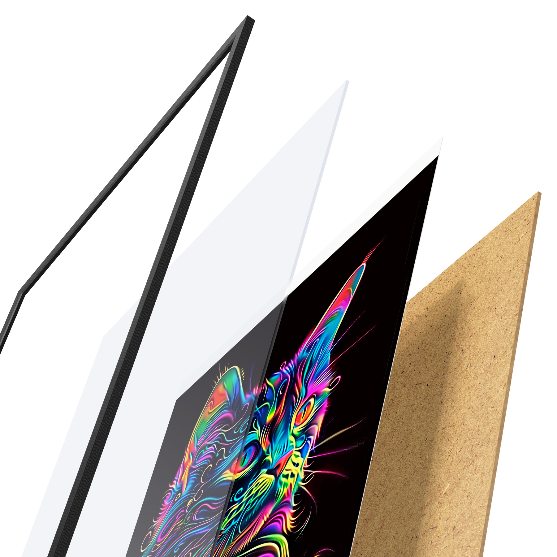 Plakat koosneb raamist, pleksiklaasist, trükitud pildist ja puitlaastplaadist alusplaadist. Tänu tagaküljel olevatele kinnitustele saab plakati kohe seinale riputada.