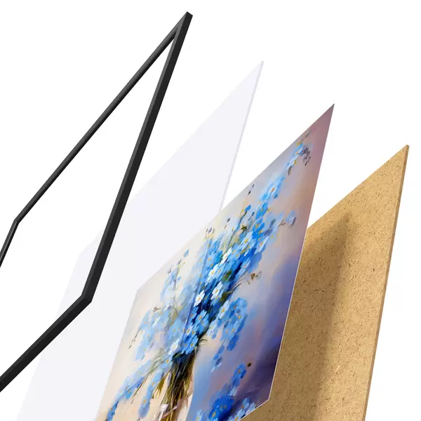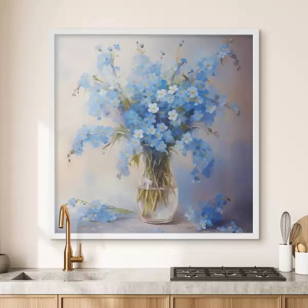 Poster Siniste metsalillede kimp klaasist karahvini õlimaal Nr f39331