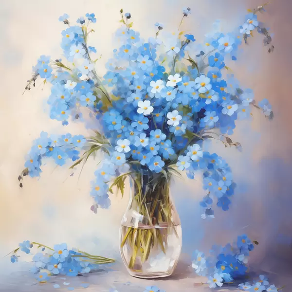 Poster Siniste metsalillede kimp klaasist karahvini õlimaal Nr f39331