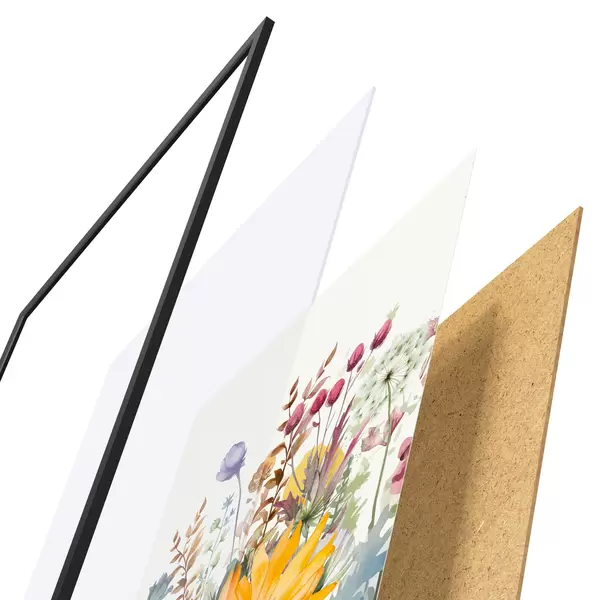 Plakat koosneb raamist, pleksiklaasist, trükitud pildist ja puitlaastplaadist alusplaadist. Tänu tagaküljel olevatele kinnitustele saab plakati kohe seinale riputada.