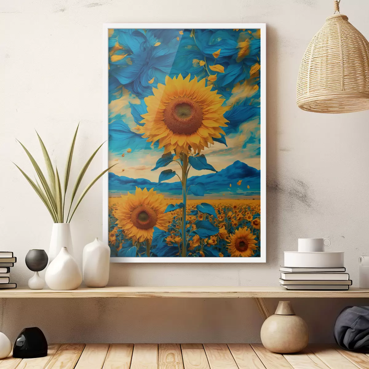 Plakat Päevalillede põld abstraktse taeva kohal f39367