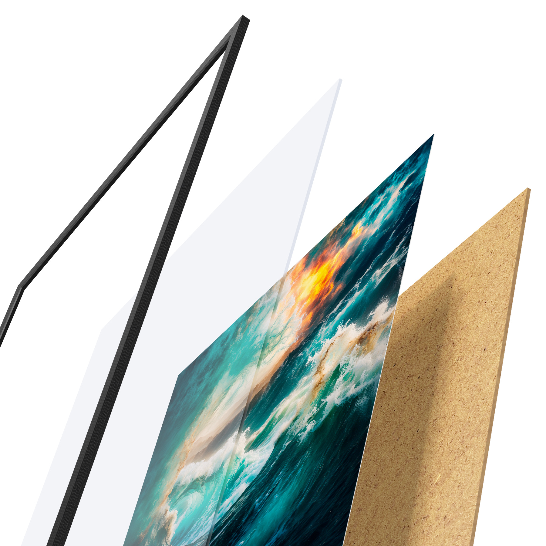 Plakat koosneb raamist, pleksiklaasist, trükitud pildist ja puitlaastplaadist alusplaadist. Tänu tagaküljel olevatele kinnitustele saab plakati kohe seinale riputada.