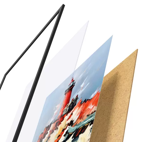 Plakat koosneb raamist, pleksiklaasist, trükitud pildist ja puitlaastplaadist alusplaadist. Tänu tagaküljel olevatele kinnitustele saab plakati kohe seinale riputada.