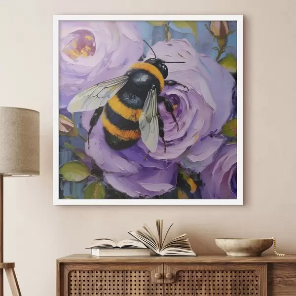 Plakat Mesilane roosa pune, suvelilled, õlimaal, erksad pintslitõmbed f39410