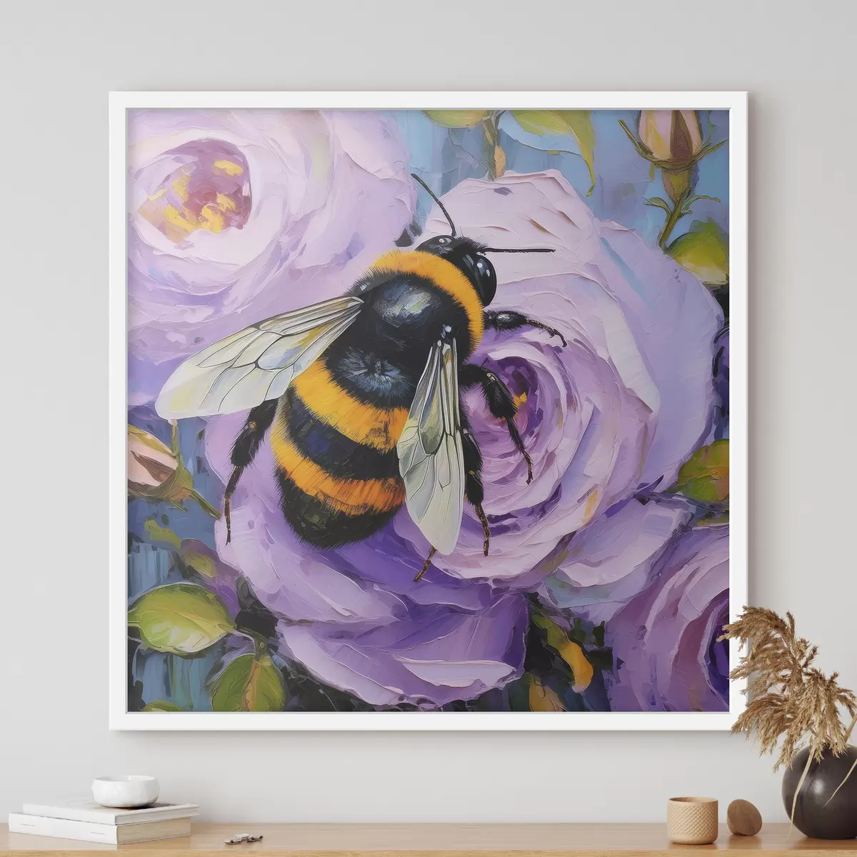 Poster Mesilane roosa pune, suvelilled, õlimaal, erksad pintslitõmbed Nr f39410