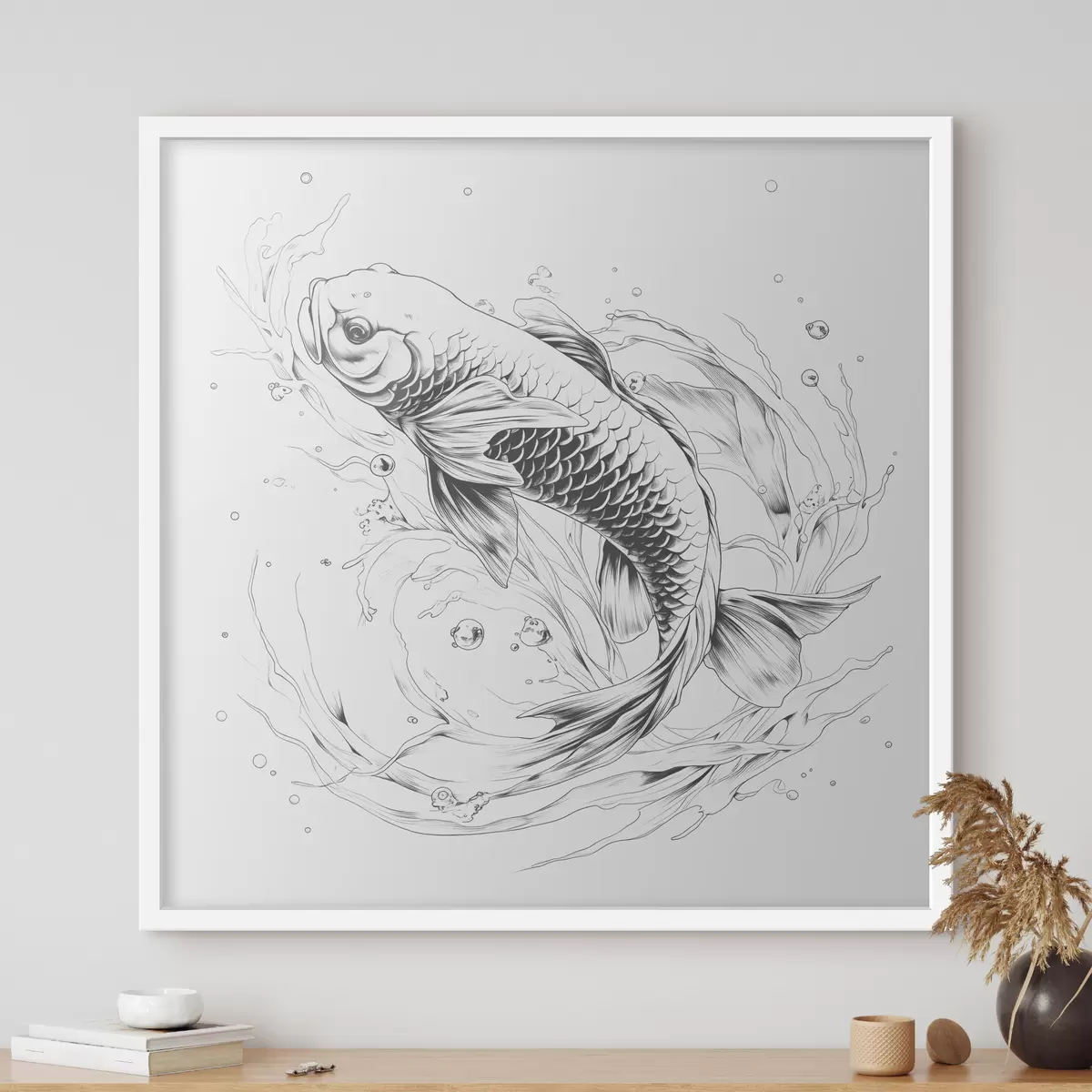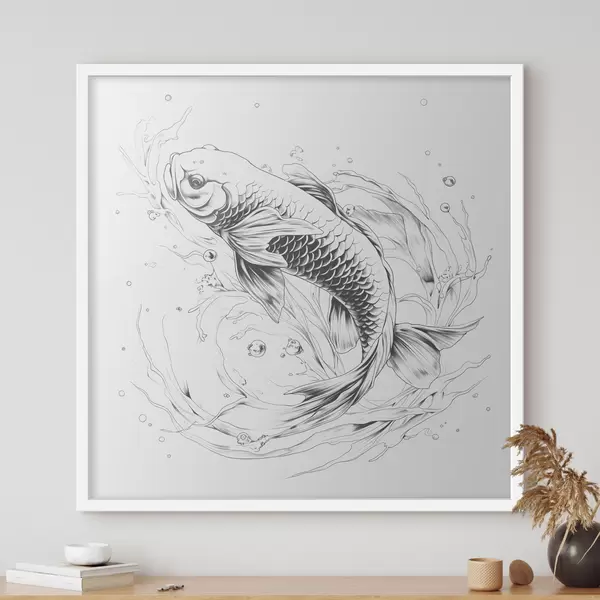 Poster Koi kalade ühevärviline joonistus Nr f39433