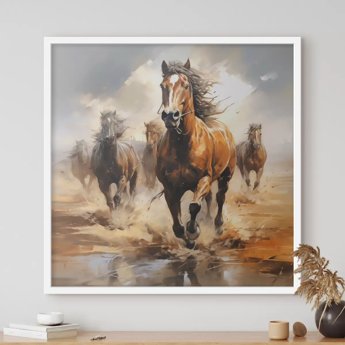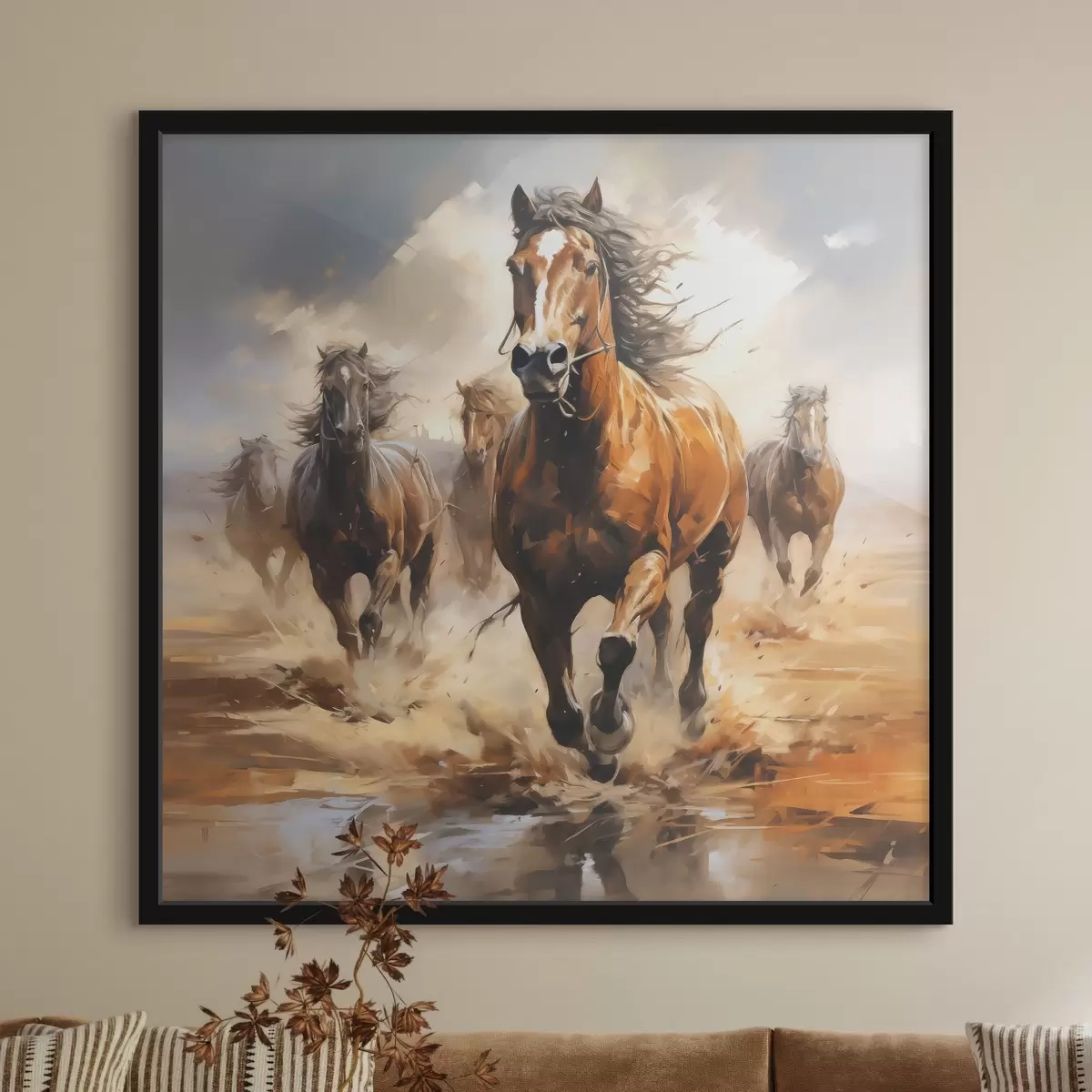 Plakat Hobused galopeerivad niidul õlimaalil f39436