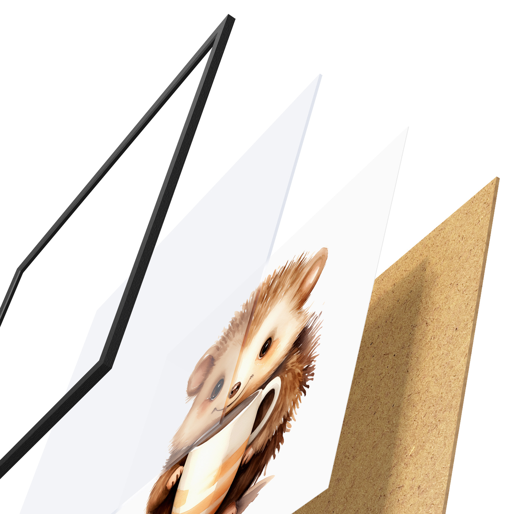 Plakat Siil, kes hoiab käpuli valget tassi, akvarellillustratsioon lastele f39440