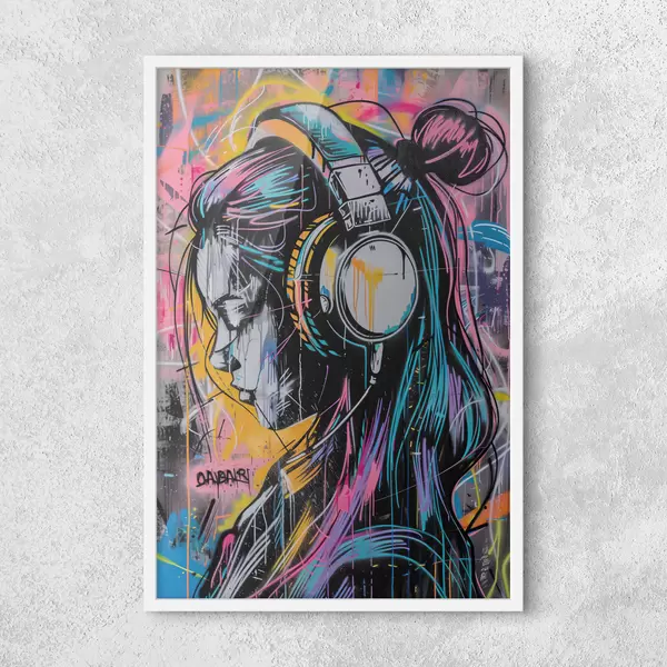 Plakat Graffiti stiilis kõrvaklappidega naine f39443