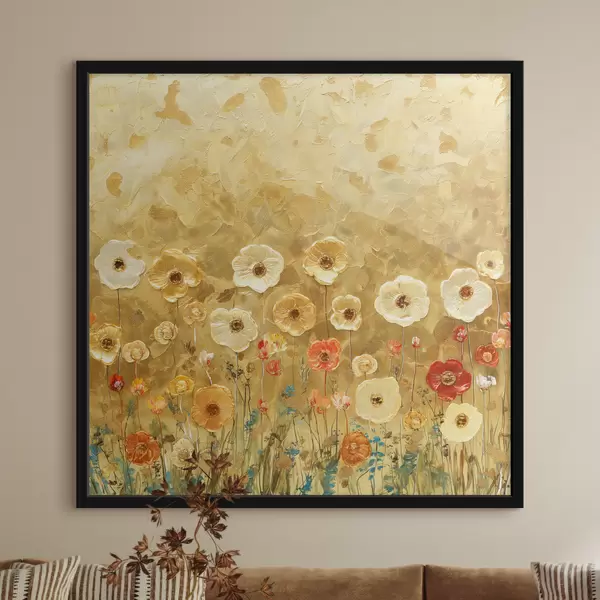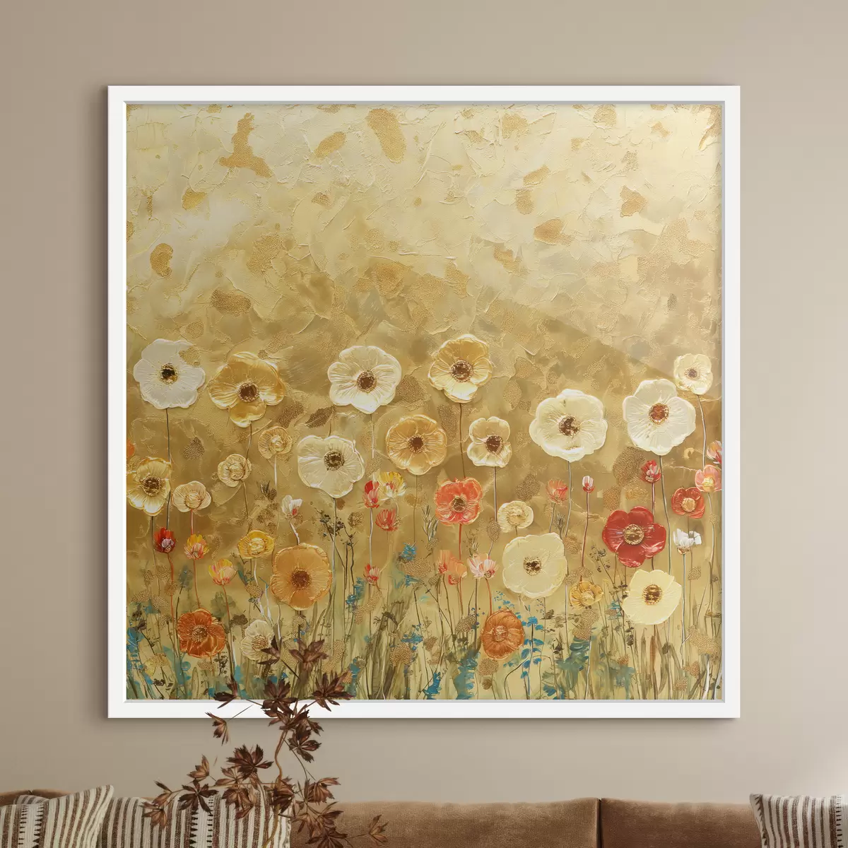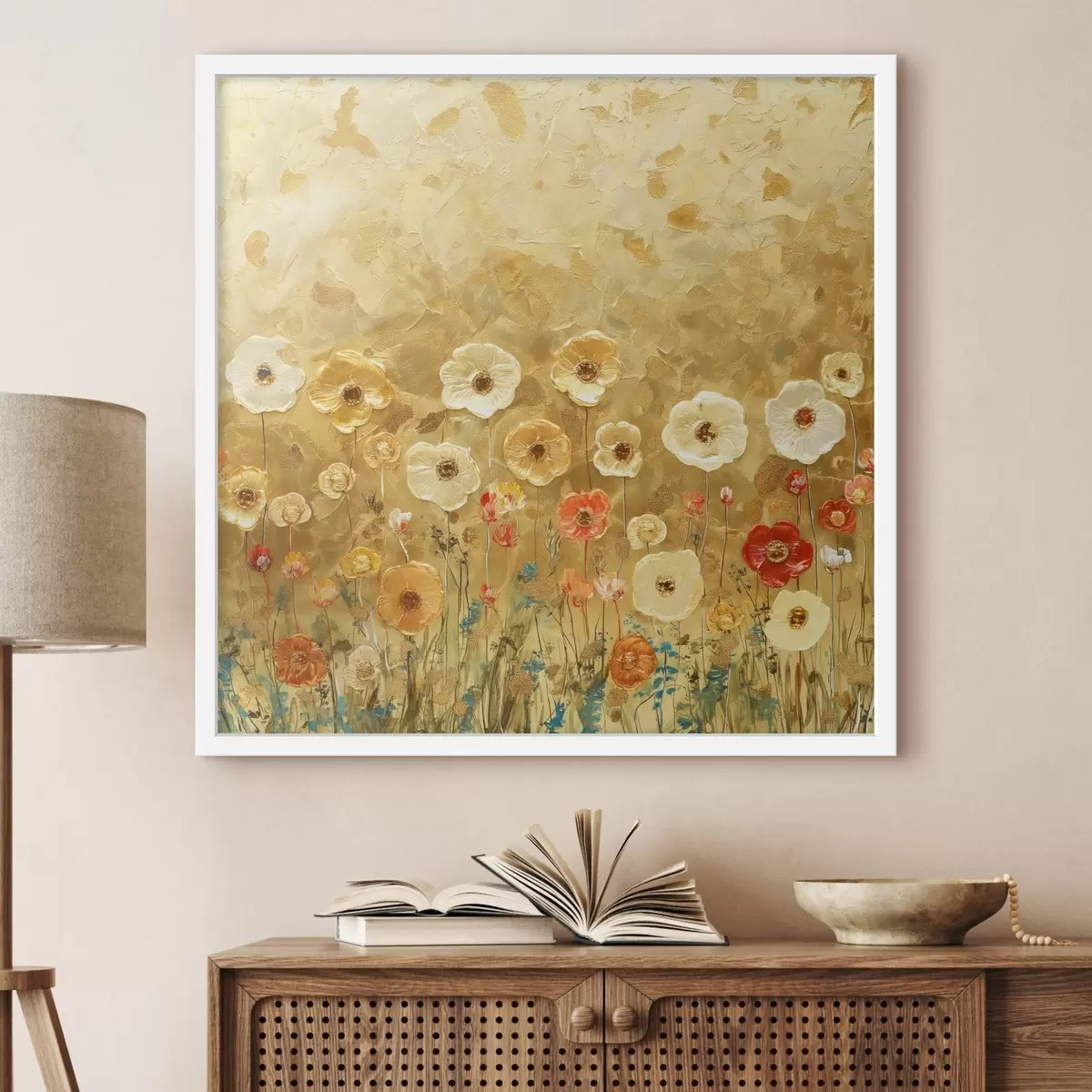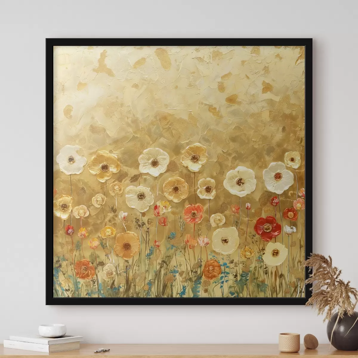 Plakat Klimti stiilis heinamaa: õrnad pastelllilled, mille tekstuur on sulatatud f39464