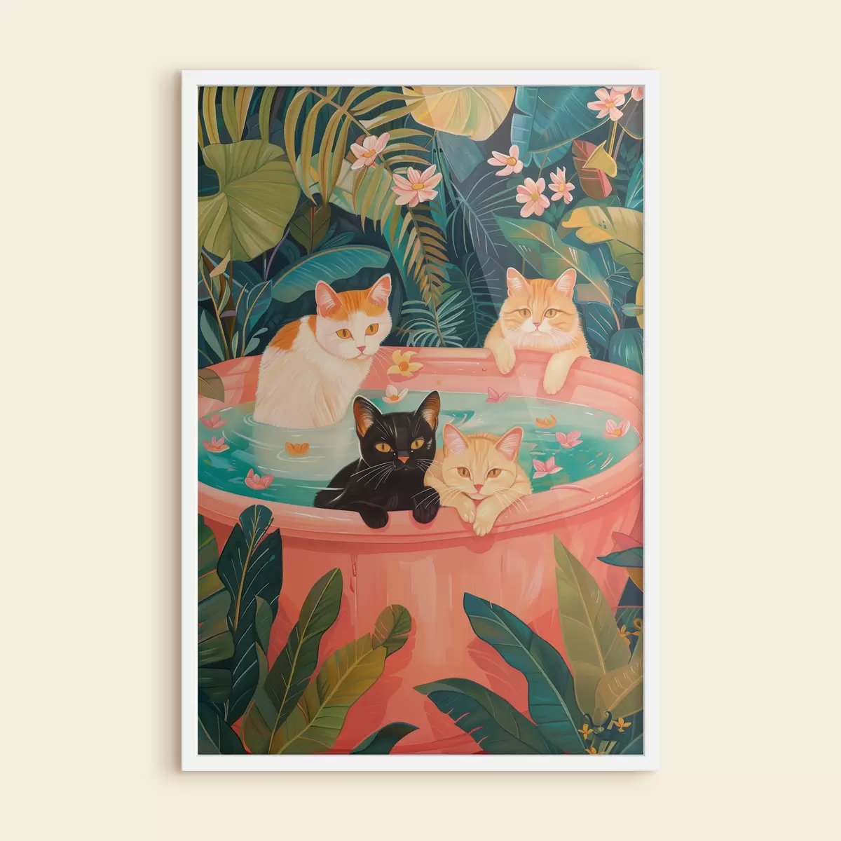 Poster Kassid roosas vannis roheliste lehtedega, džungli atmosfäär Nr f39465