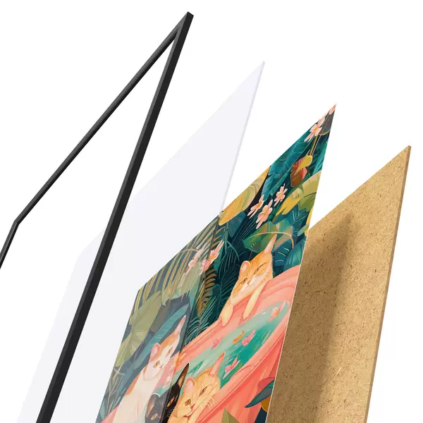 Plakat koosneb raamist, pleksiklaasist, trükitud pildist ja puitlaastplaadist alusplaadist. Tänu tagaküljel olevatele kinnitustele saab plakati kohe seinale riputada.