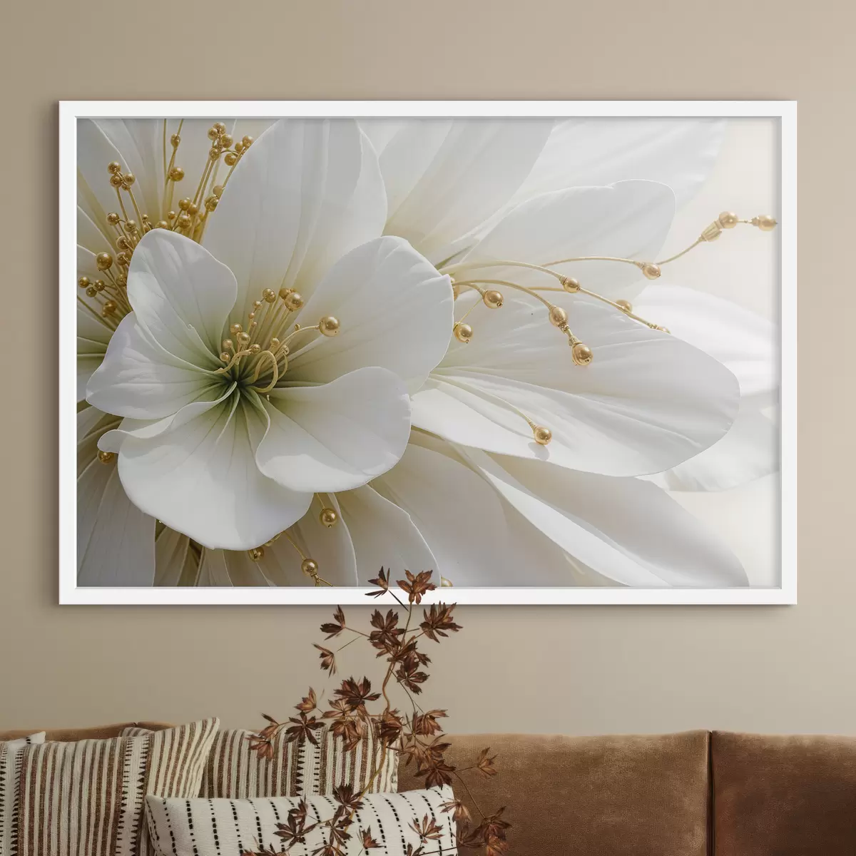 Plakat Lähivõte suurest valgest õrnade kroonlehtede lillest f39507