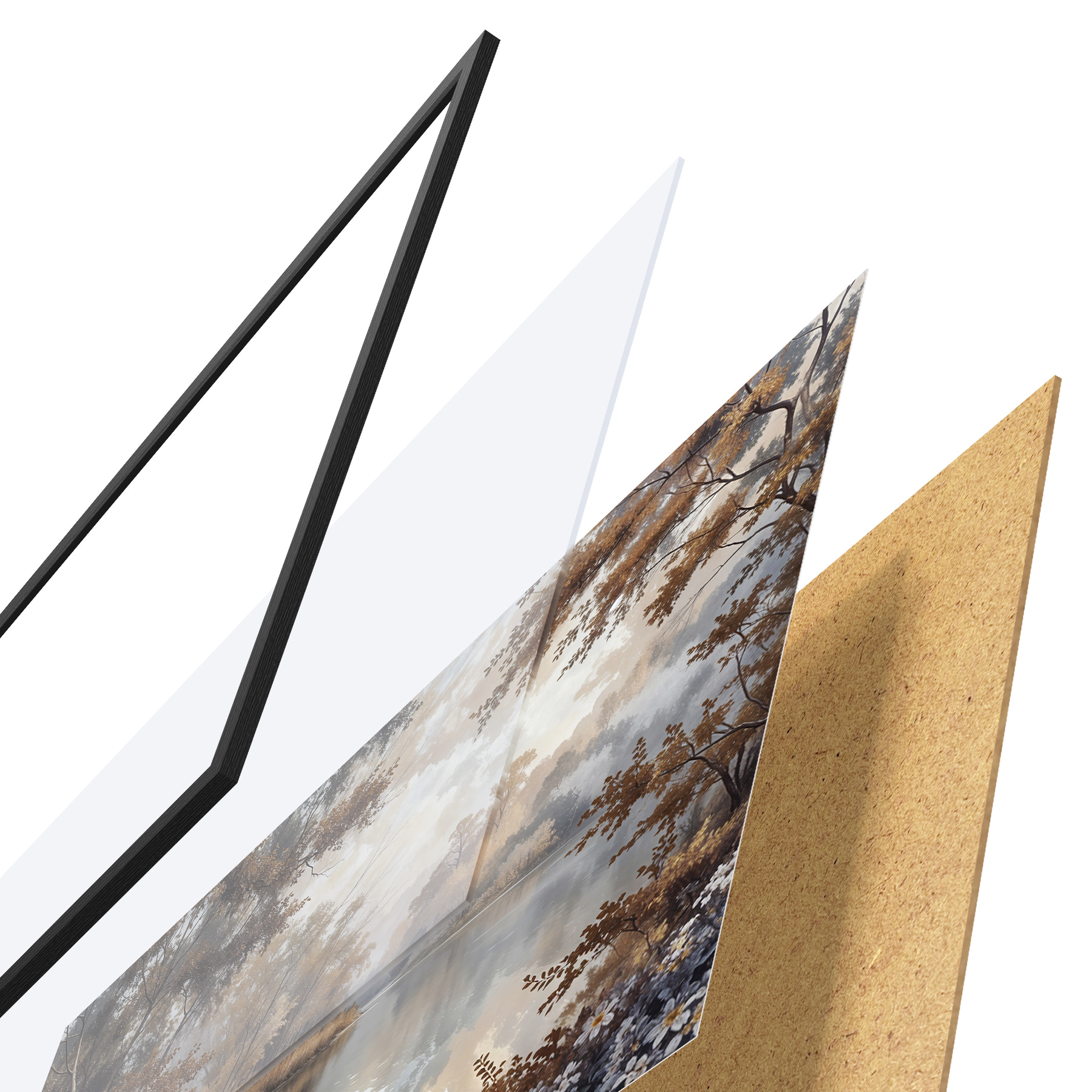 Plakat Sügisene maastik rahuliku järvega, mida ümbritsevad erksa oranži ja kollase lehestikuga puud f39511
