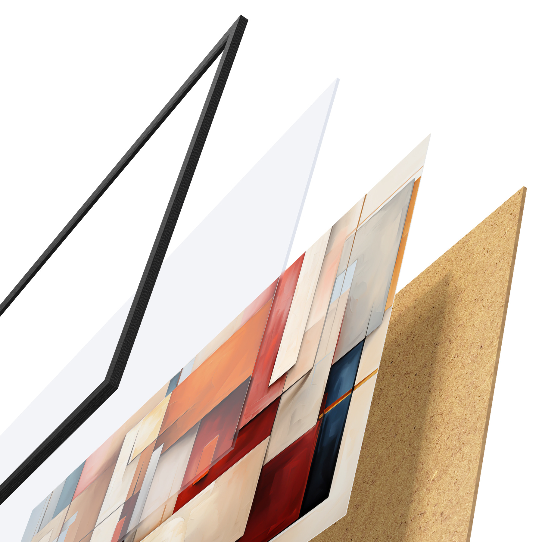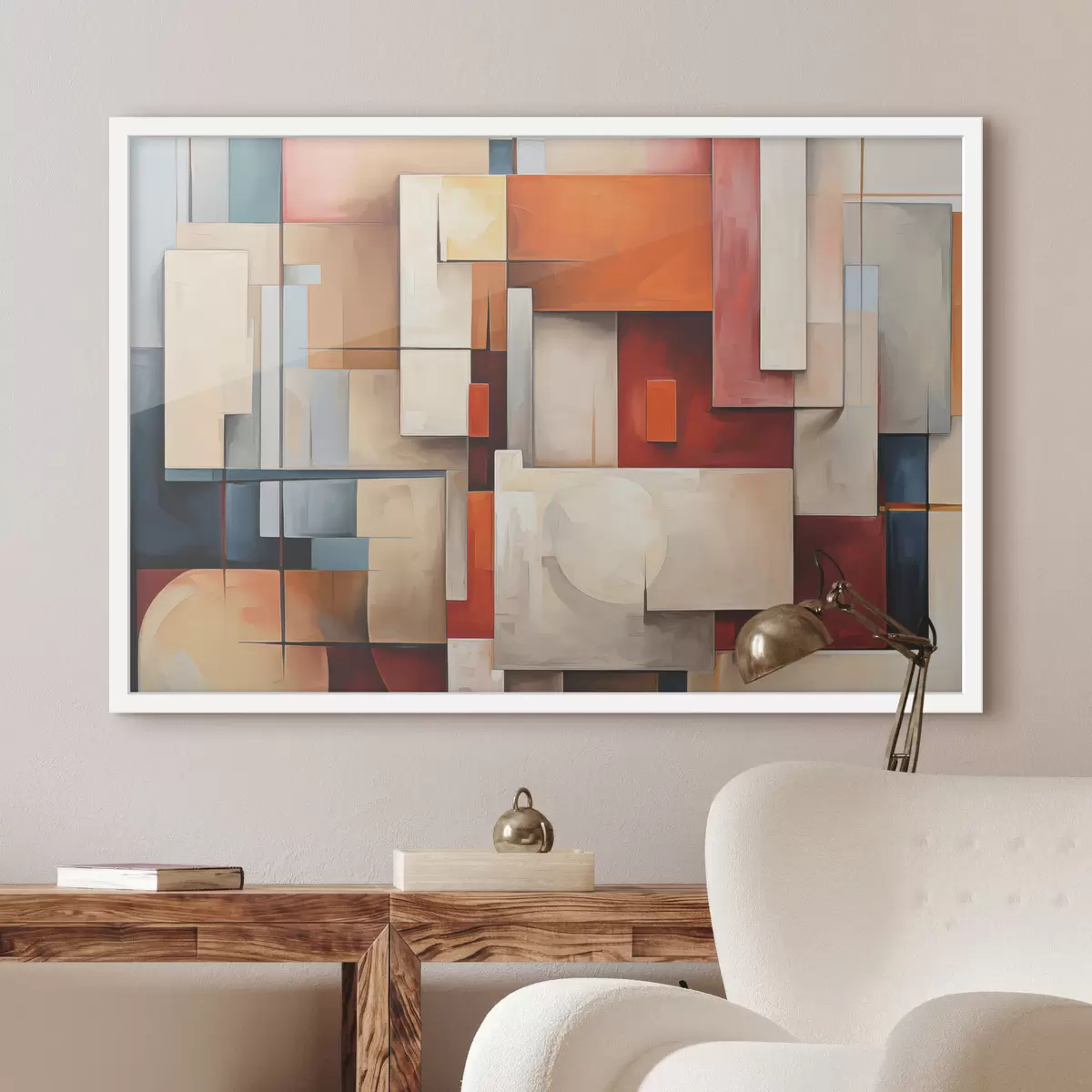Plakat Abstraktsioon kubismi stiilis, õlimaal, punane, sinine, valge värvid f39571