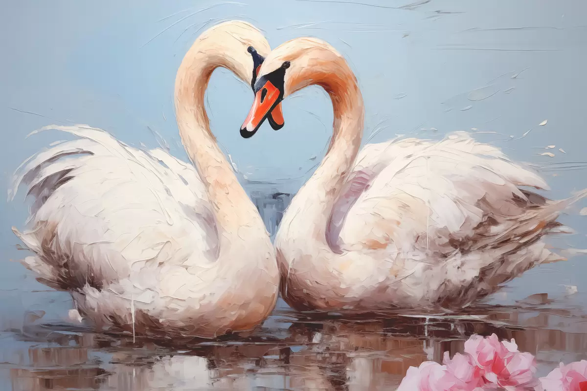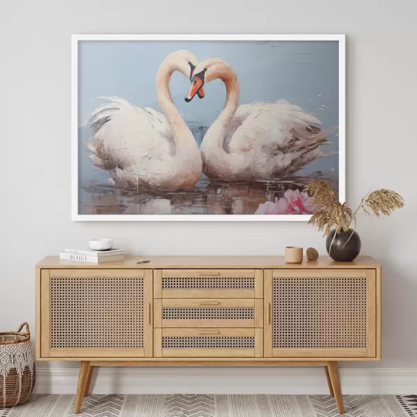 Poster Valge luigepaar tiigil, õlimaal Nr f39572