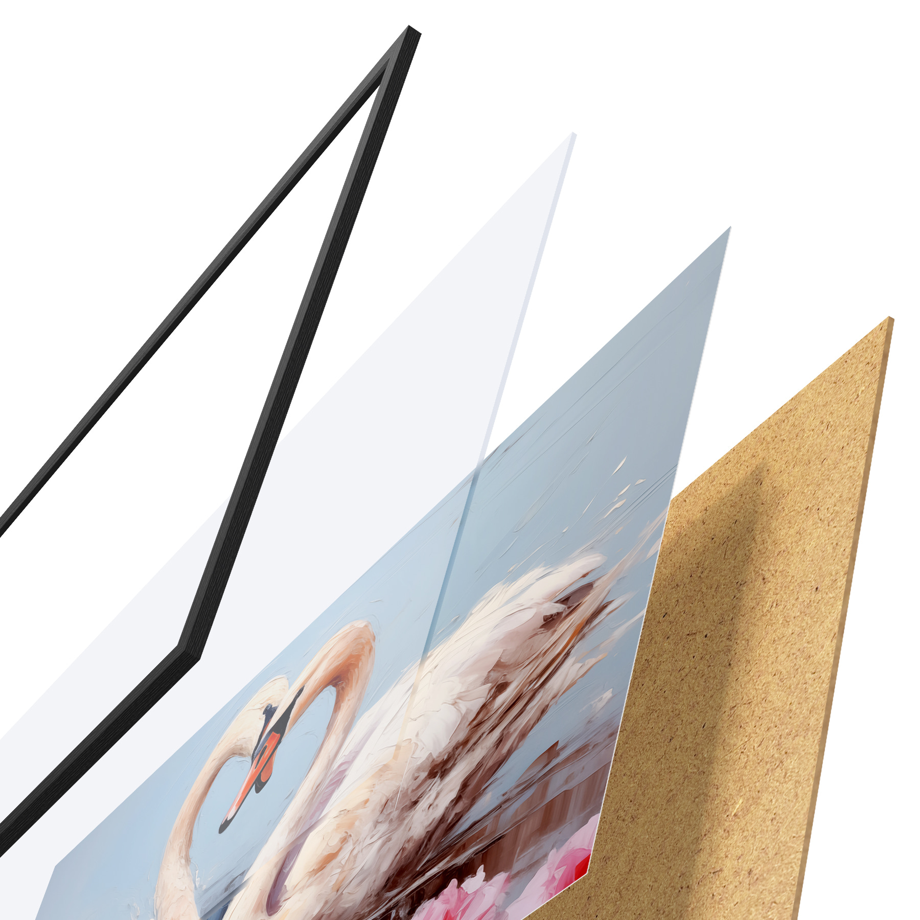 Plakat koosneb raamist, pleksiklaasist, trükitud pildist ja puitlaastplaadist alusplaadist. Tänu tagaküljel olevatele kinnitustele saab plakati kohe seinale riputada.
