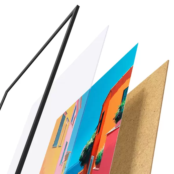 Plakat koosneb raamist, pleksiklaasist, trükitud pildist ja puitlaastplaadist alusplaadist. Tänu tagaküljel olevatele kinnitustele saab plakati kohe seinale riputada.