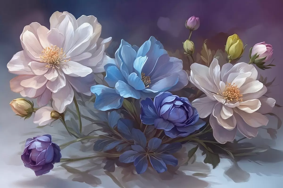 Poster Valged ja sinised lilled ähmasel taustal Nr f39603