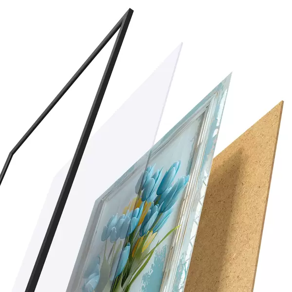 Plakat koosneb raamist, pleksiklaasist, trükitud pildist ja puitlaastplaadist alusplaadist. Tänu tagaküljel olevatele kinnitustele saab plakati kohe seinale riputada.