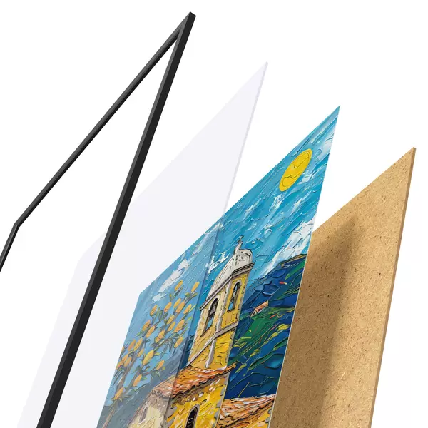 Plakat koosneb raamist, pleksiklaasist, trükitud pildist ja puitlaastplaadist alusplaadist. Tänu tagaküljel olevatele kinnitustele saab plakati kohe seinale riputada.