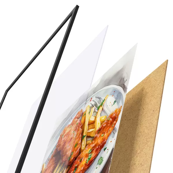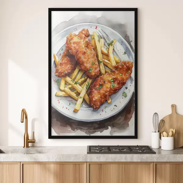 Plakat Akvarell toidukunst, friikartulid röstitud kanaga, maitsev f39708