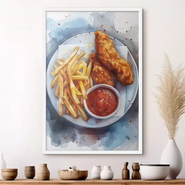 Poster Akvarell tänavatoit, friikartulid röstitud kanaga, maitsev Nr f39709