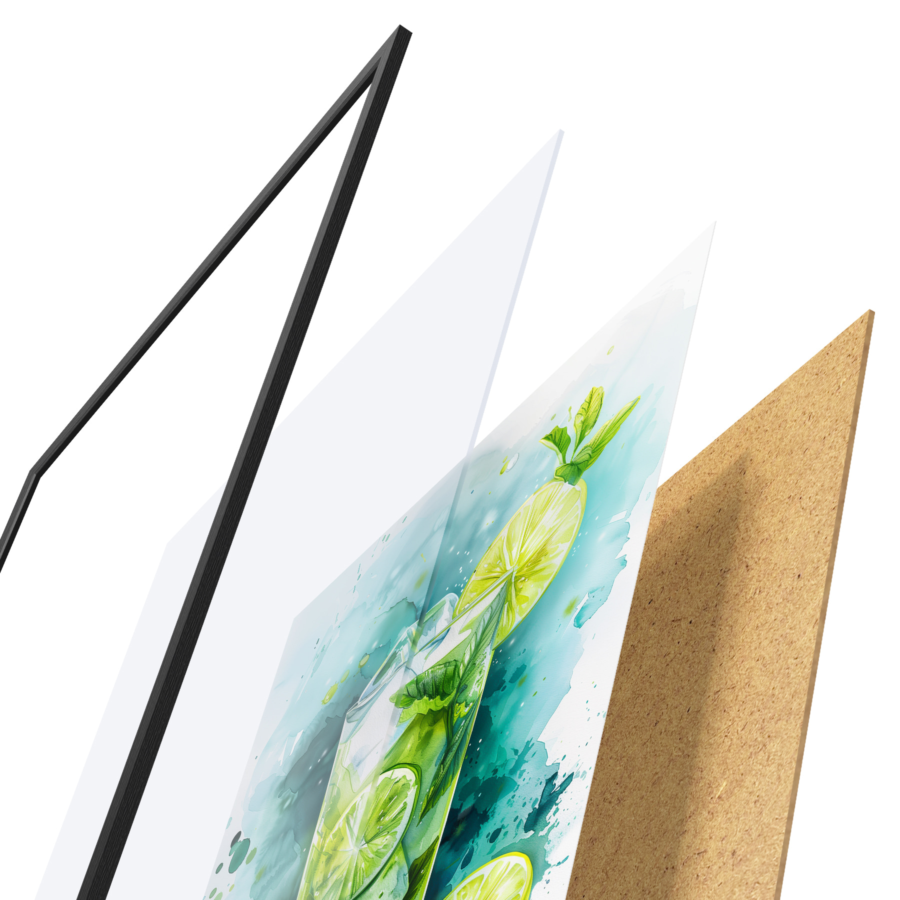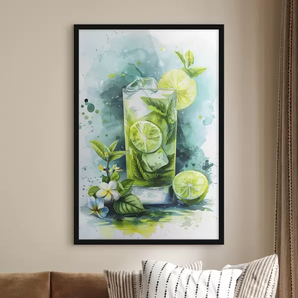 Poster Akvarell suvekokteil, mojito, laim ja piparmünt, lillelised, rohelised värvid Nr f39712