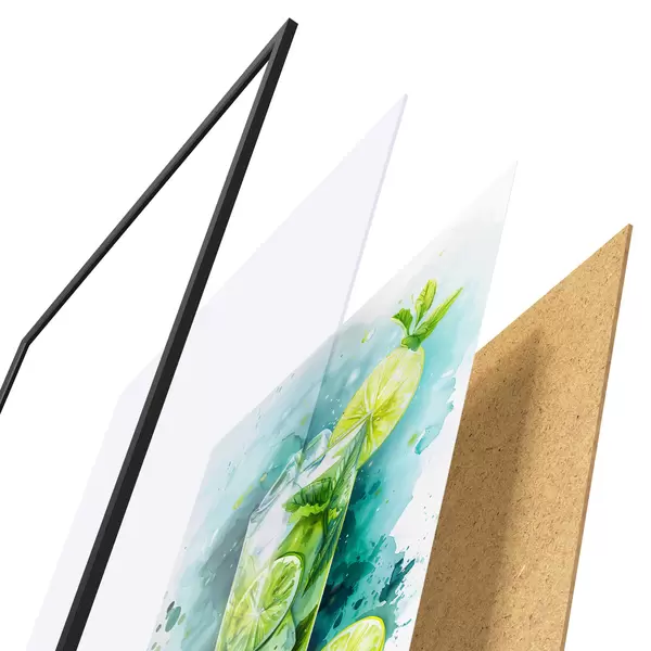Plakat Akvarell suvekokteil, mojito, laim ja piparmünt, lillelised, rohelised värvid f39712