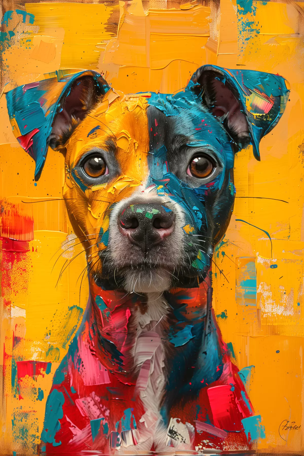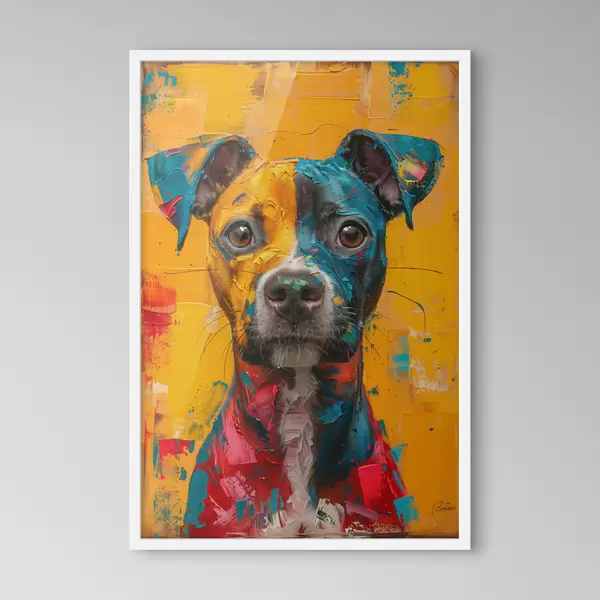 Poster Kollaste ja siniste õlipintslitõmmetega Pitbulli portree Nr f39722
