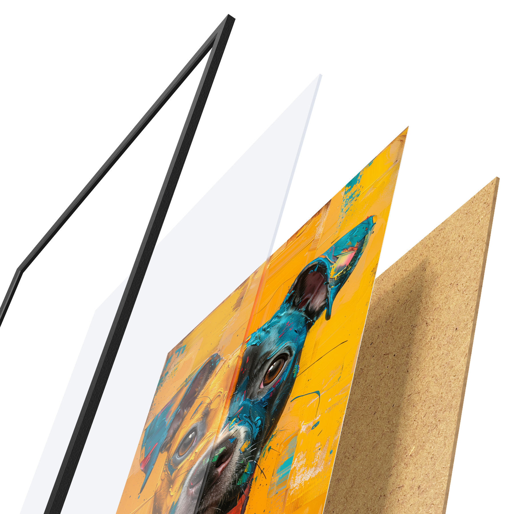 Plakat Kollaste ja siniste õlipintslitõmmetega Pitbulli portree f39722