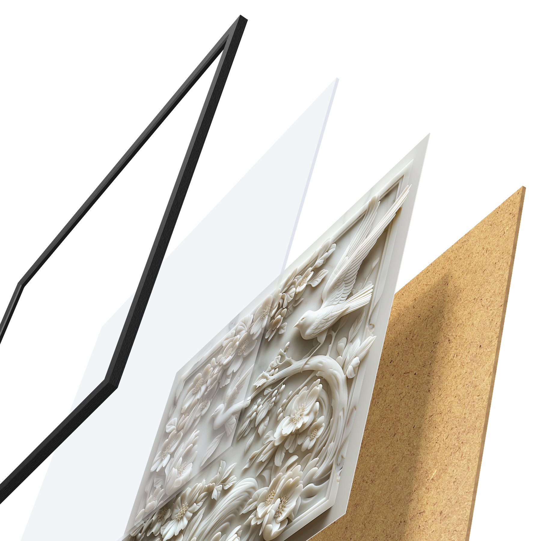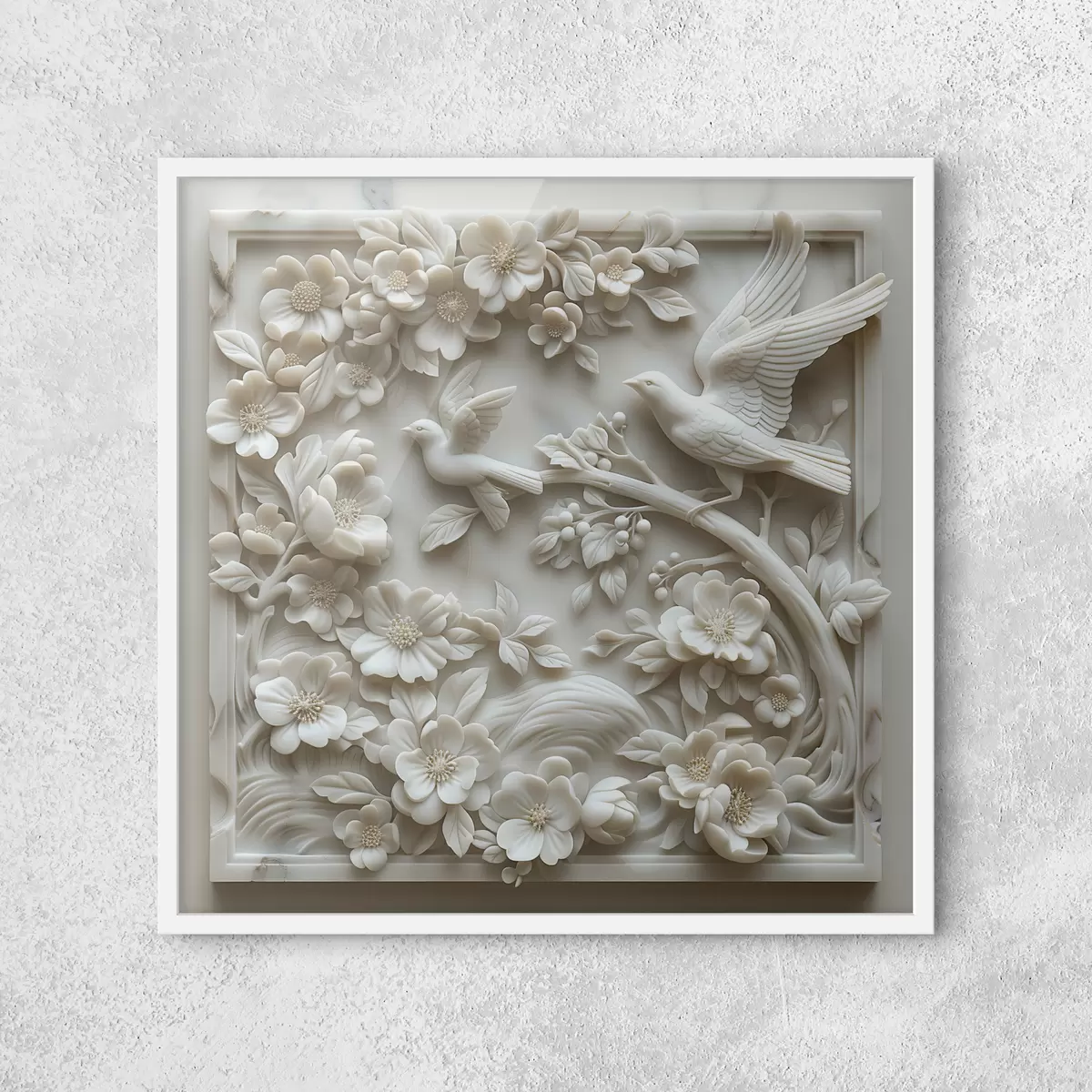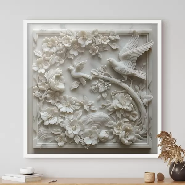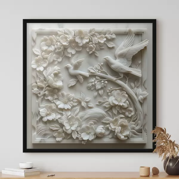 Poster Valge marmorist aed lindude ja lillede reljeefidega Nr f39728