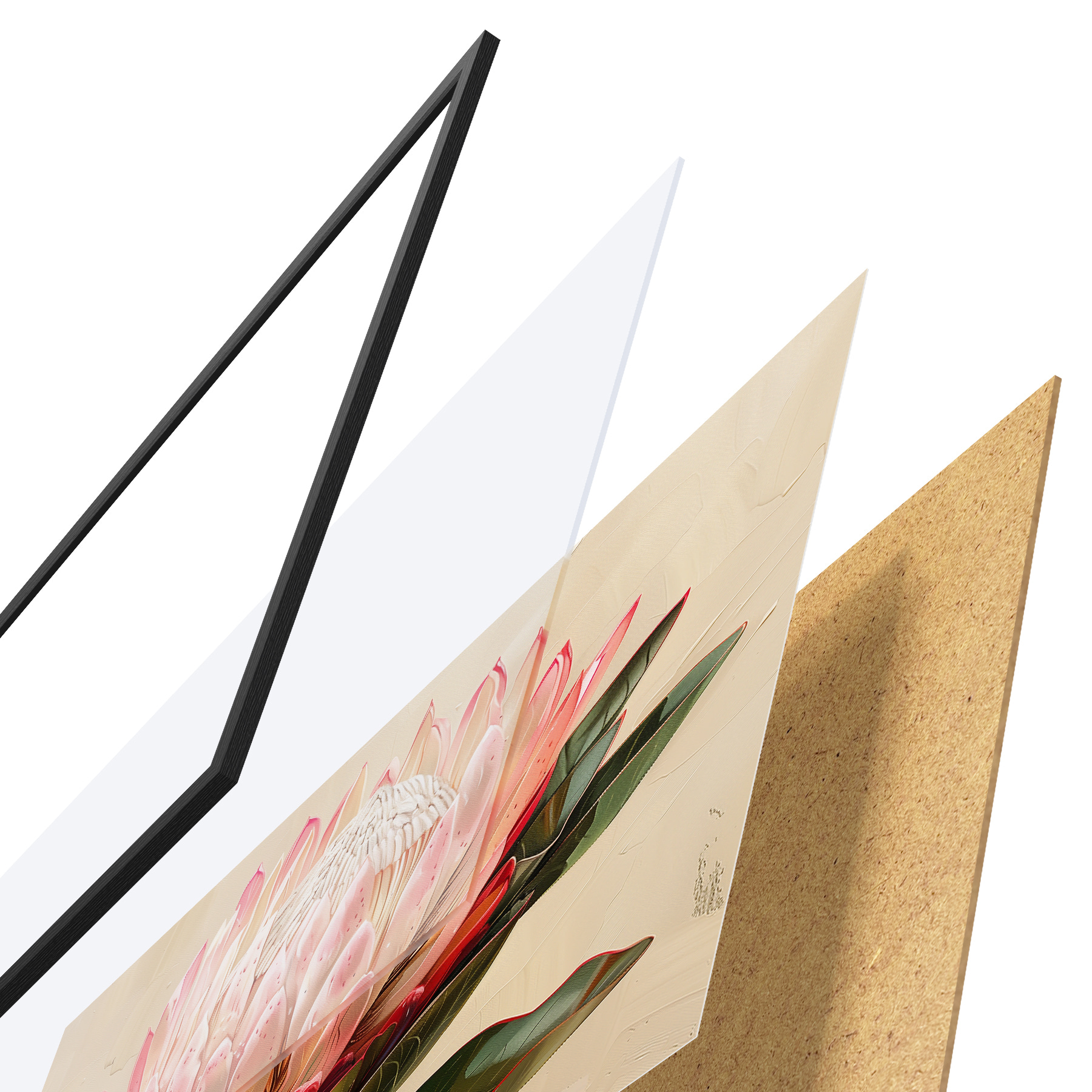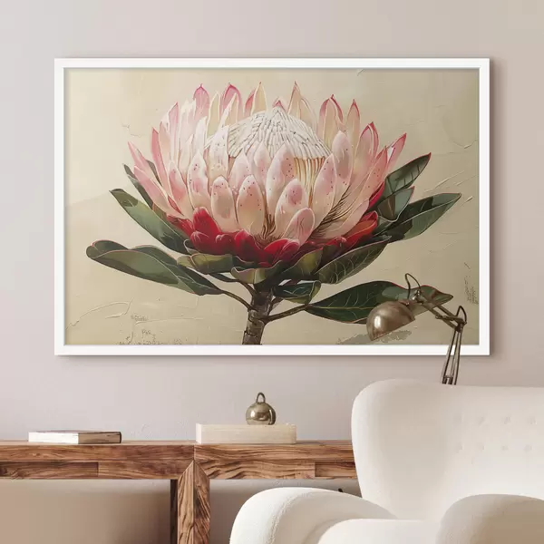 Plakat Protea lill, akrüüljoonis, lilleline, pehmed looduslikud värvid f39780