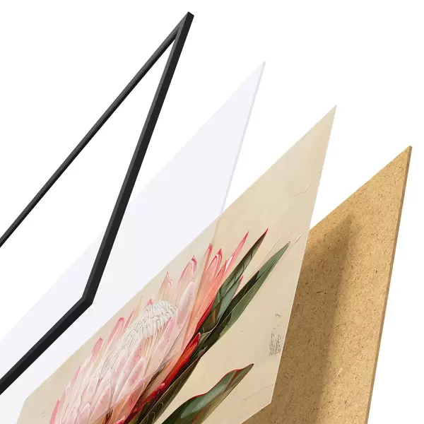 Poster Protea lill, akrüüljoonis, lilleline, pehmed looduslikud värvid Nr f39780