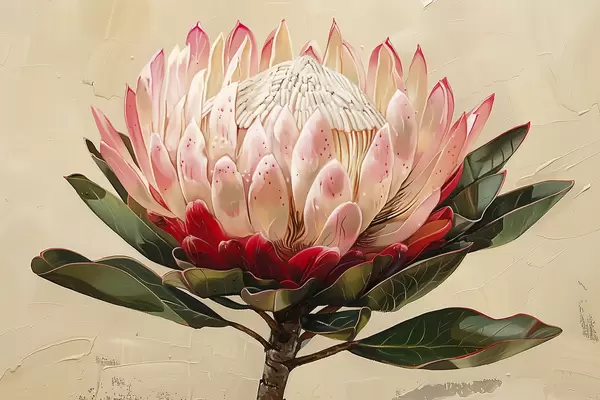 Plakat Protea lill, akrüüljoonis, lilleline, pehmed looduslikud värvid f39780