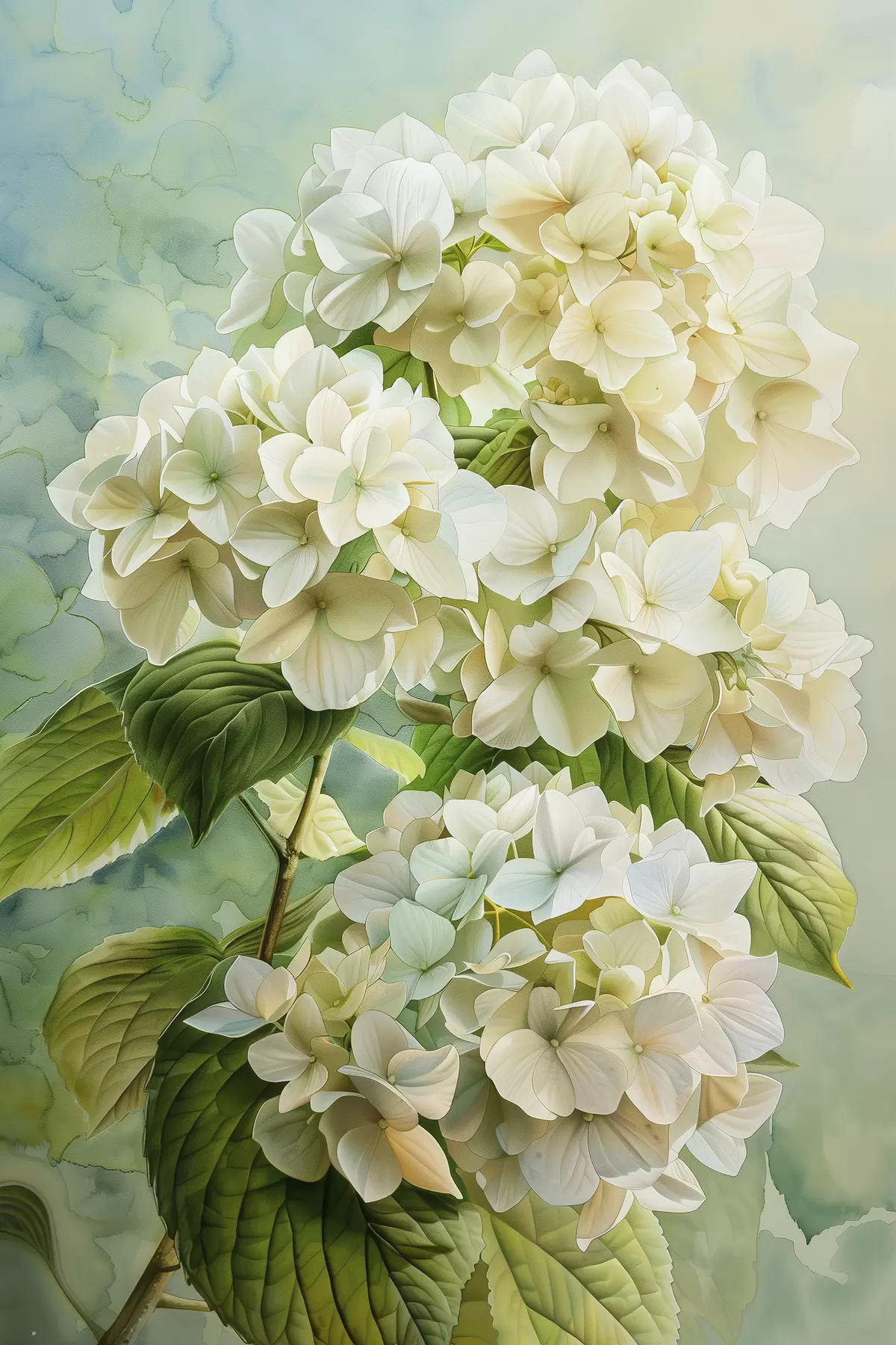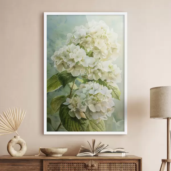 Plakat Hortensia lill, lilleline, pehmed looduslikud värvid, akvarelljoonistus f39782