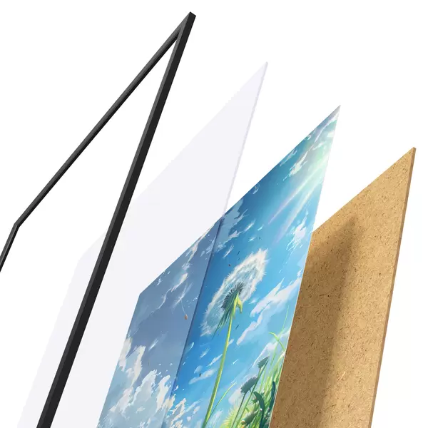 Plakat koosneb raamist, pleksiklaasist, trükitud pildist ja puitlaastplaadist alusplaadist. Tänu tagaküljel olevatele kinnitustele saab plakati kohe seinale riputada.