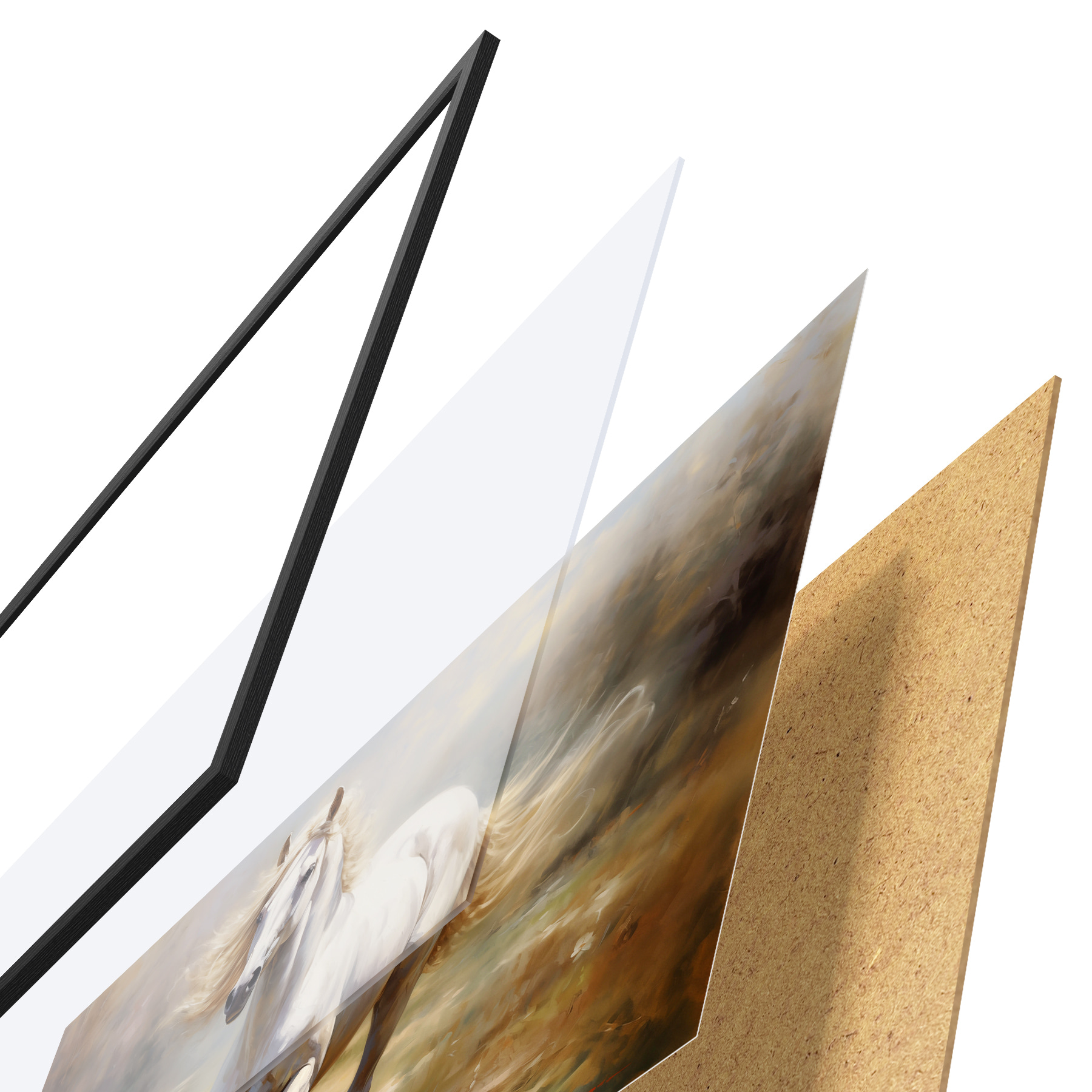 Poster Valge hobune kappamas üle heinamaa õlimaal Nr f39818