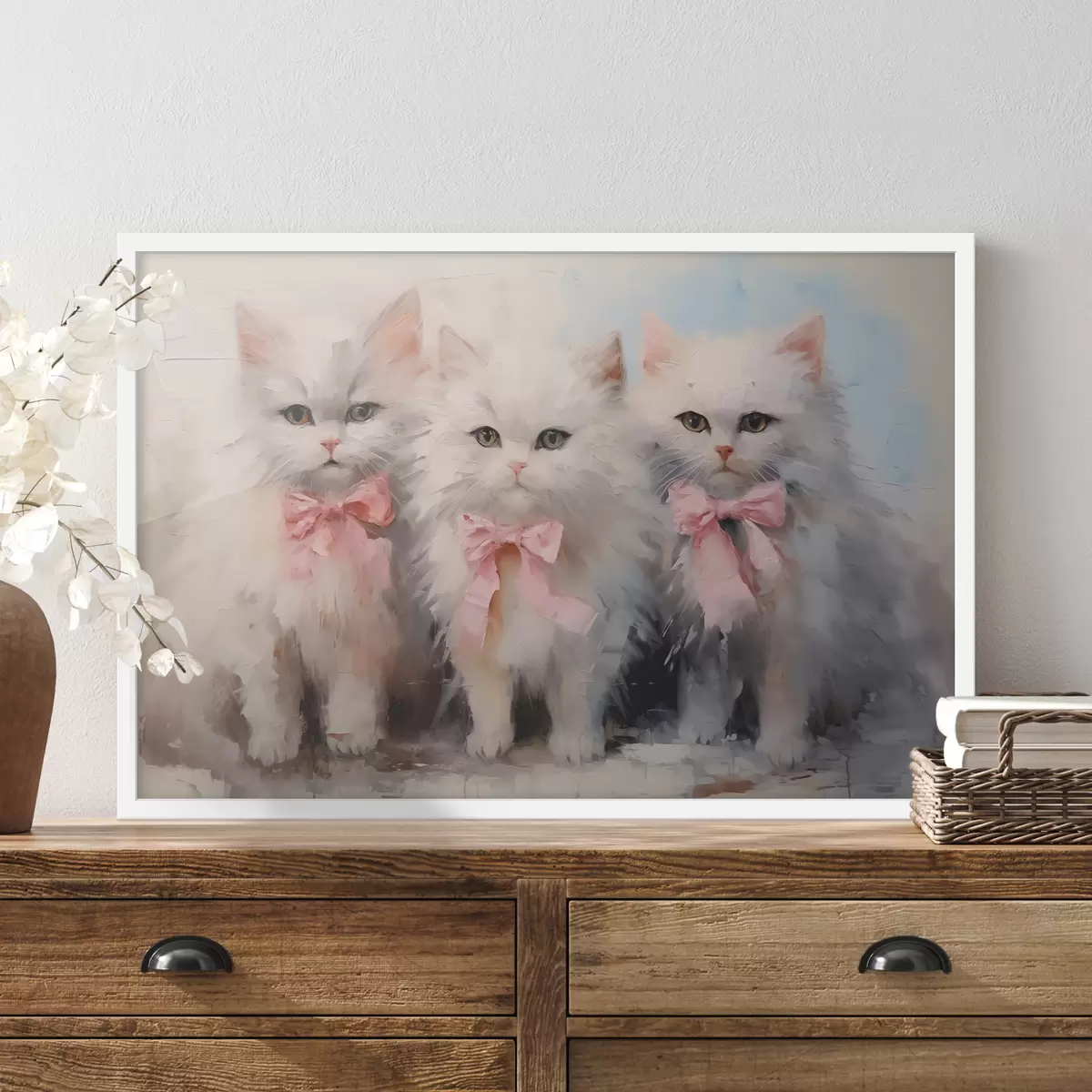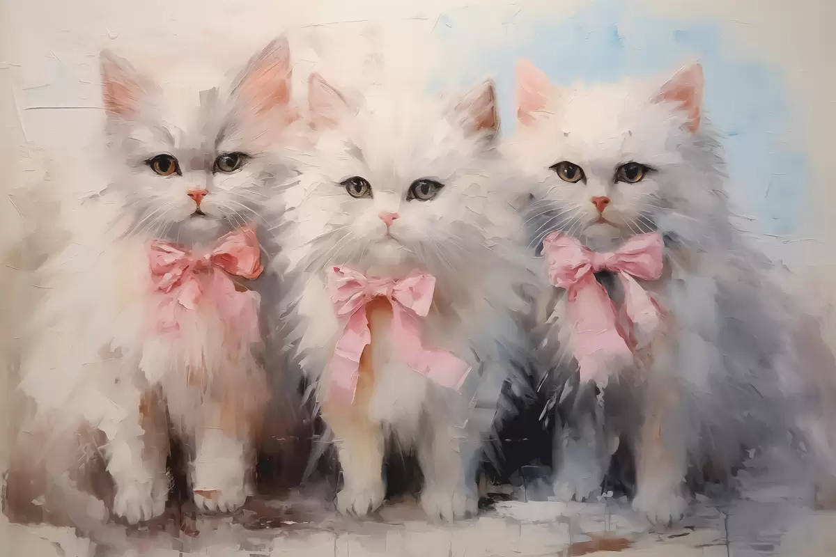 Poster Valged kassid roosade vibudega õlimaal Nr f39826